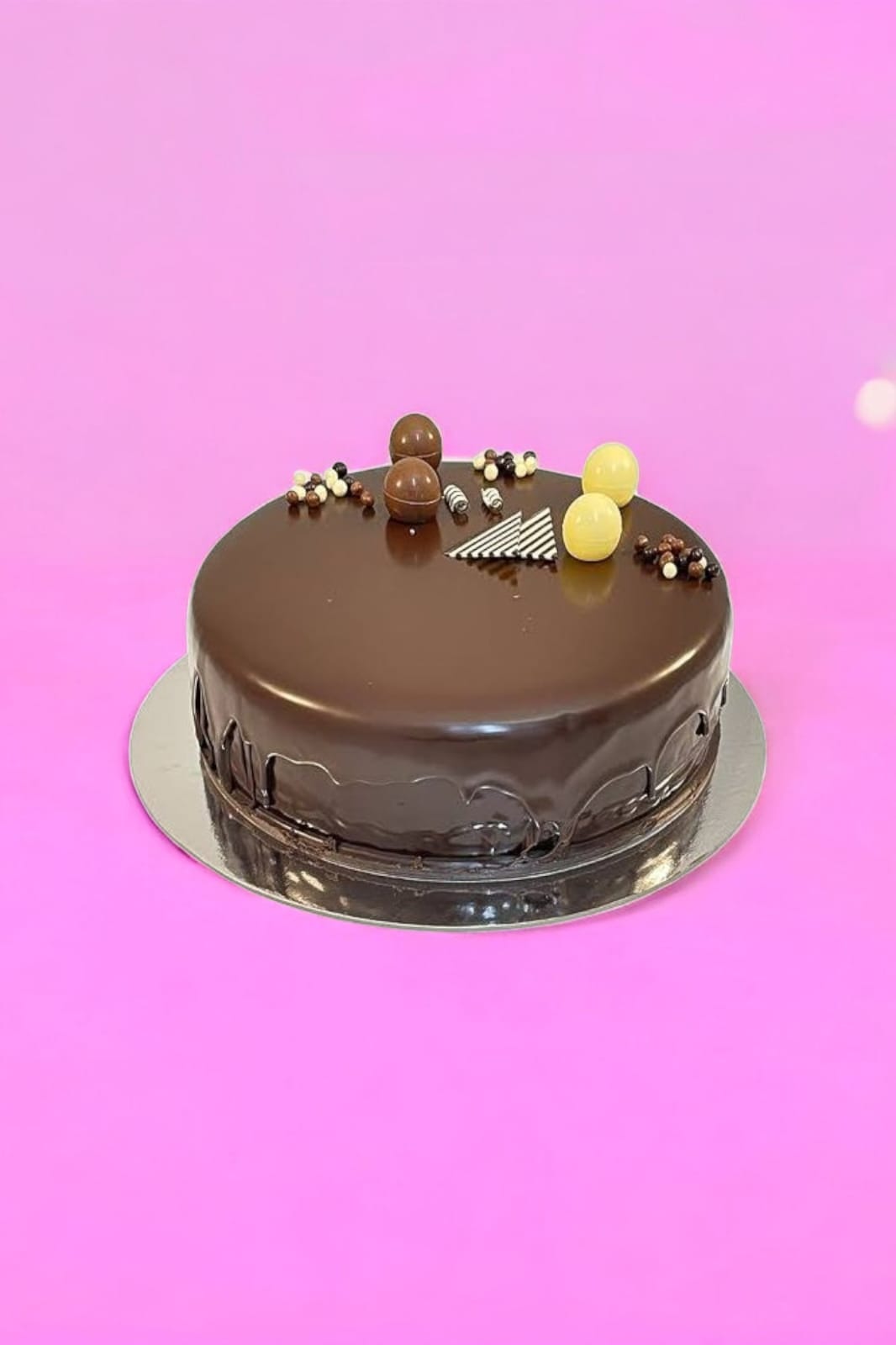 Rich chocolate sponge layered with creamy chocolate ganache.
