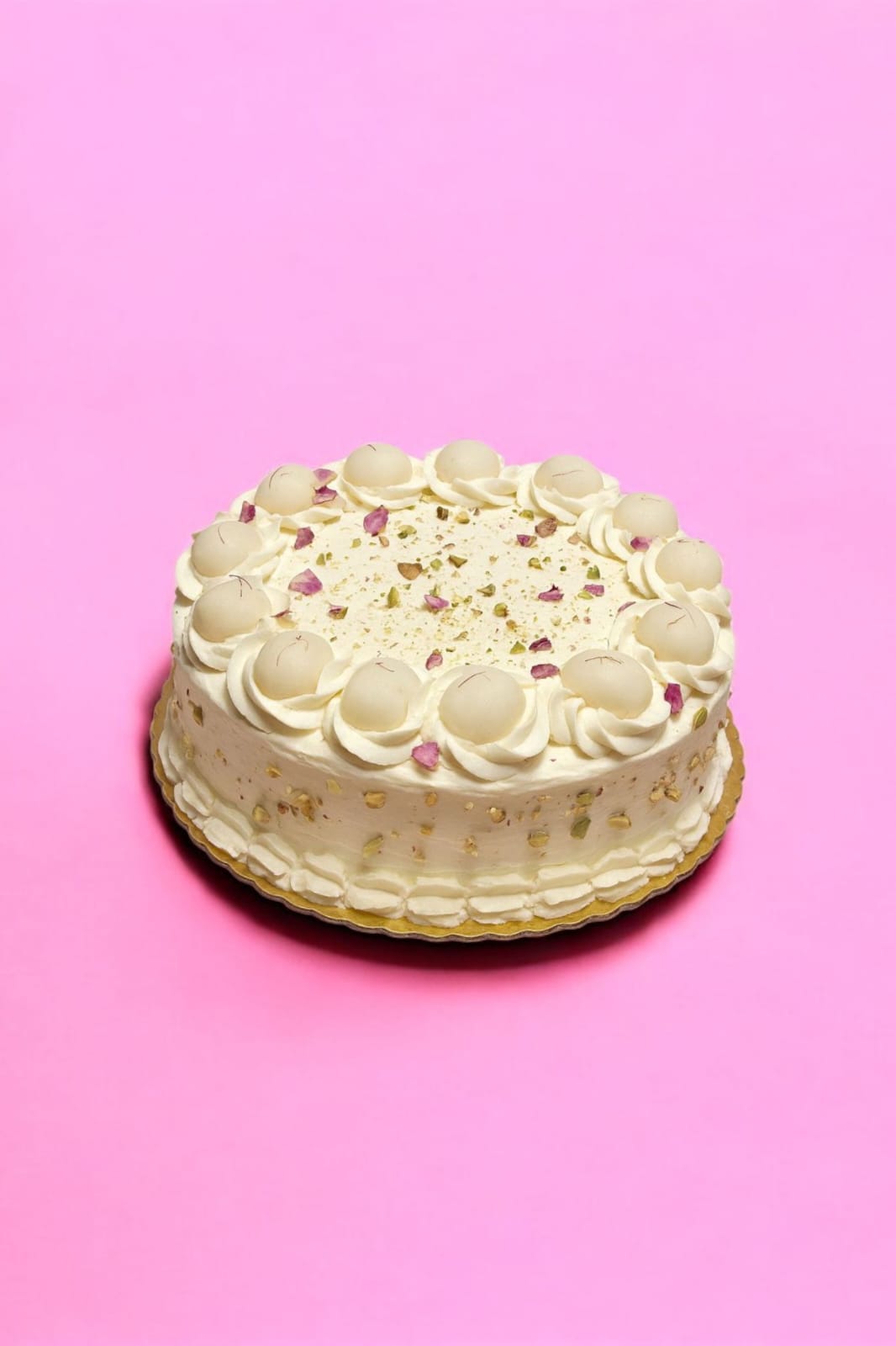 Indian fusion cake soaked in rasmalai milk and nuts.